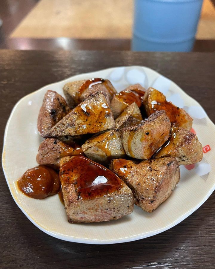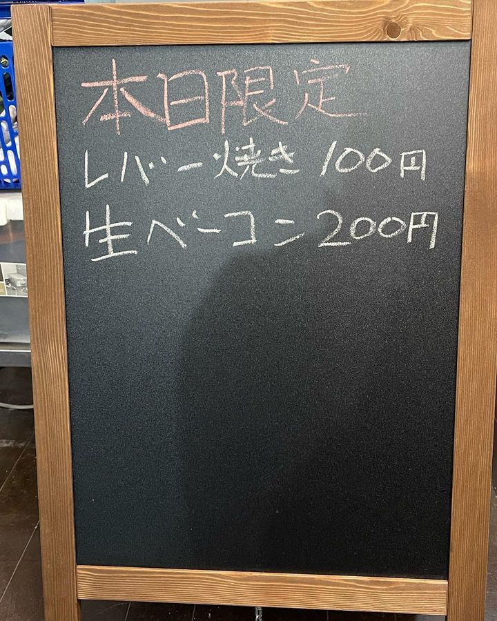 本日限定、新鮮なレバーの網焼き、100円(写真は2人前)
