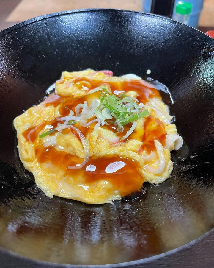 ふわふわ卵にカニカマの甘酢あんかけ。