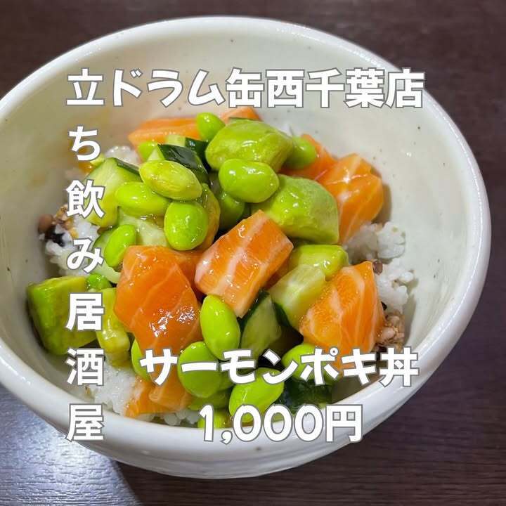 #サーモンポキ丼 #ポキ丼 #居酒屋新メニュー #西千葉グルメ #立ち飲みグルメ #せんべろ酒場 #千葉大学生に人気 #居酒屋ランチ #映えグルメ
