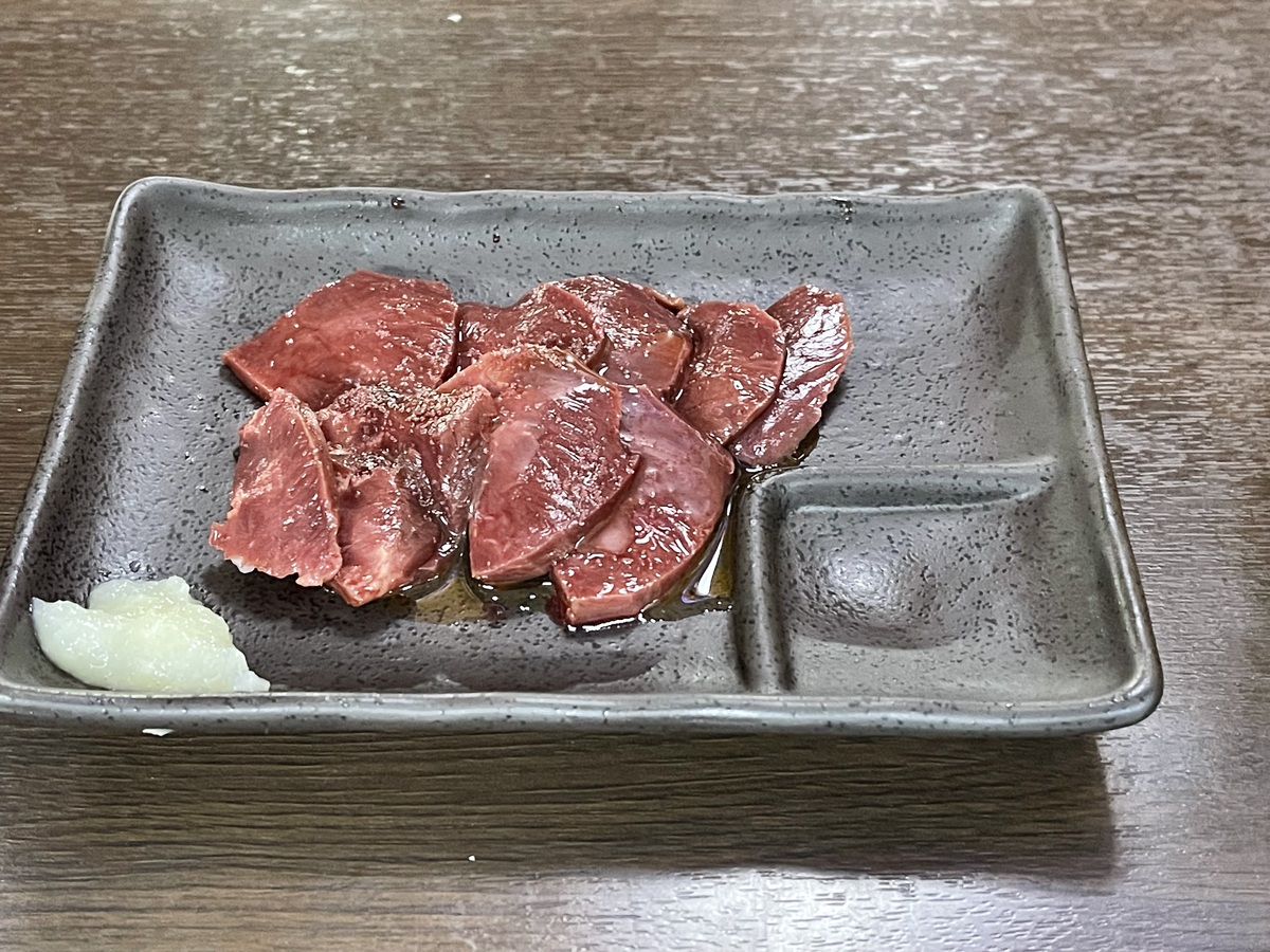 謎めいた旨さの【馬のハツ刺し(1,000円)】が登場です。