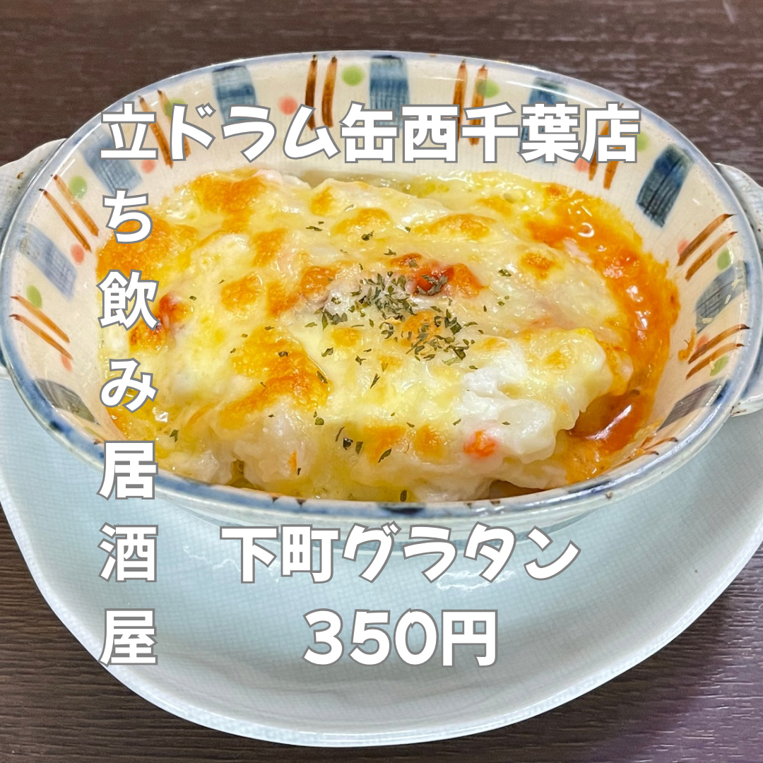 とろりとしたホワイトソースに、香ばしく焼いたチーズと具材の旨みがぎゅっと詰まった「下町グラタン」を立ち飲み価格でご提供します。軽くつまめて満足感あり——昼飲みも、仕事帰りのちょい飲みも、どちらにもぴったりの相棒です。熱々をその場でどうぞ。