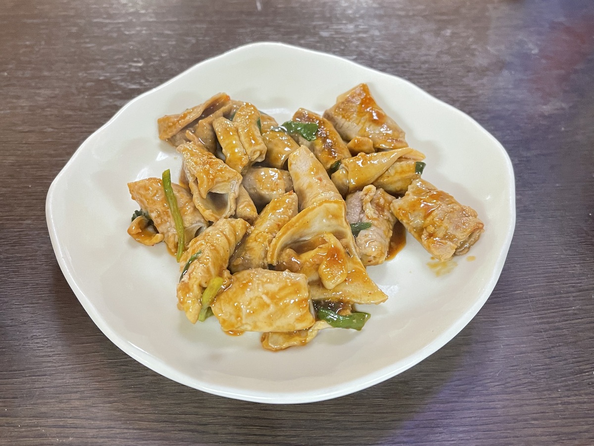 香ばしく焼き上げたホルモンに、特製の味噌ダレをしっかり絡めた一皿。