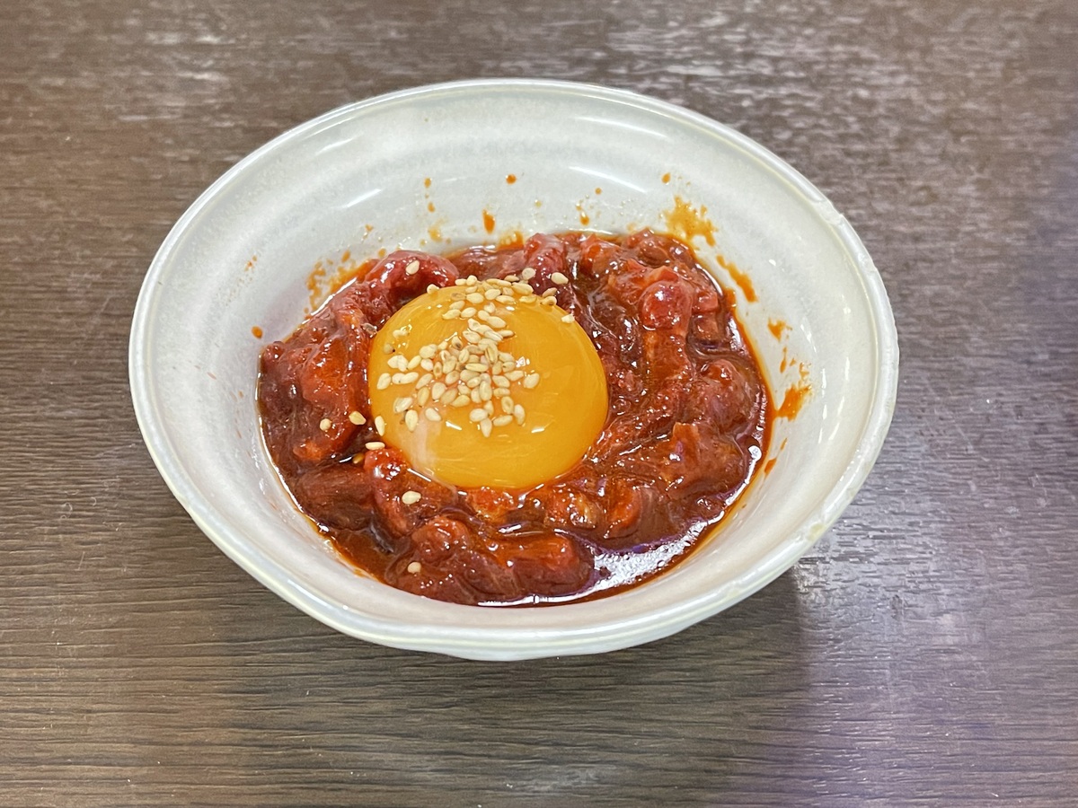 とろっと卵を崩して、濃厚ダレと絡む桜ユッケ。