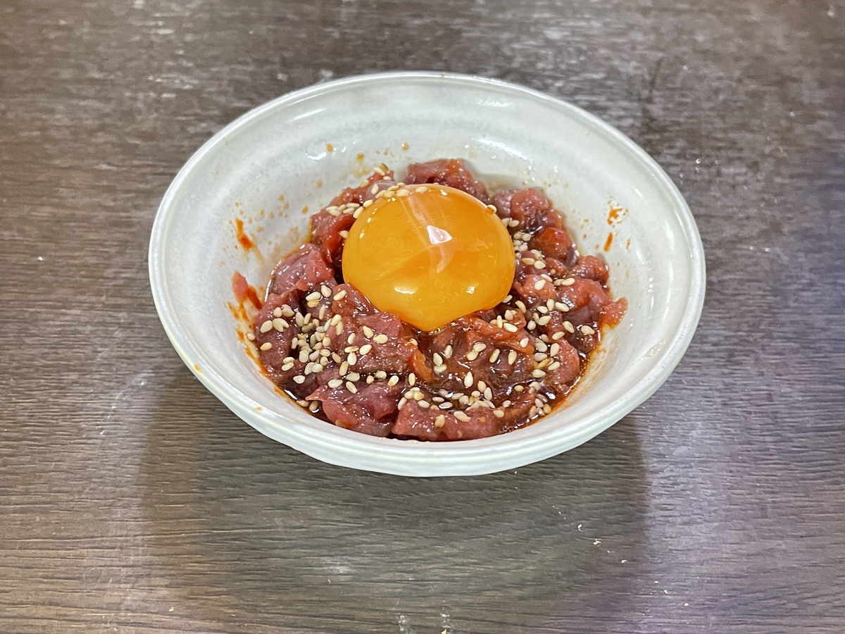 人気メニューの桜ユッケは、とろっとした卵黄と馬肉の旨みが相性抜群。お酒が進む一品として、昼飲みのお客様にも好評です。