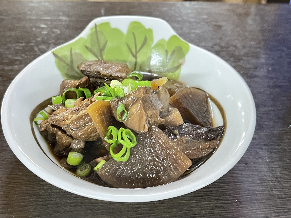 じっくり煮込んだ牛すじに、大根とこんにゃくまでしっかり味が染み込んだ人気メニュー。濃厚な旨みとやわらかい食感で、お酒との相性も抜群です。